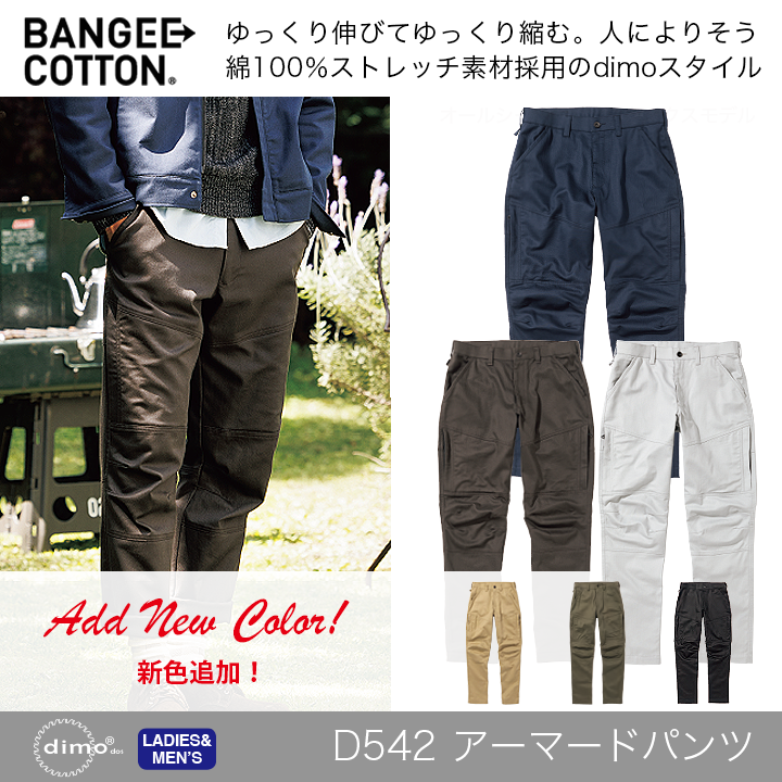 ¹ñÆâËÂÀÓ¥¯¥é¥Ü¥¦¤¬³«È¯¤·¤¿¥³¥Ã¥È¥ó100%¥¹¥È¥ì¥Ã¥ÁÁǺàBANGEE COTTON(¥Ð¥ó¥¸¡¼¥³¥Ã¥È¥ó)¤òºÎÍѤ·¤¿dimo¥¹¥¿¥¤¥ë¥ï¡¼¥¯¥¦¥§¥¢¡£ÌÊ100%¤Î¥¿¥Õ¤µ¤Ï¤½¤Î¤Þ¤Þ¤Ëºî¶ÈÃæ¤Î·ù¤Ê¥Ä¥Ã¥Ñ¥ê´¶¤ò·Ú¸º¡¢dimo¤Î¥¹¥¿¥¤¥ê¥Ã¥·¥å¤Ê¥·¥ë¥¨¥Ã¥È¤ò¥¡¼¥×¡£¥«¥Ã¥³¤è¤µ¤È¥¿¥Õ¤Ç¥¹¥È¥ì¥¹¤Î¤Ê¤¤Ãå¿´ÃϤòξΩ¤·¤Þ¤·¤¿¡£